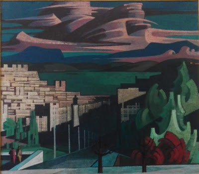 Esta tela de Carlos Calvet da Costa (1928-2014) intitulada Vista sobre Lisboa tornou-se-me familiar, depois de tantas idas aos Paços do Concelho. É uma perspetiva inabitual, com os tons nacarados das nuvens a levarem para lá o olhar. Ao fundo, está o perfil azul da Arrábida. Devia ser convocado mais vezes, só para poder olhar mais para Lisboa e, lá longe, para a Arrábida.