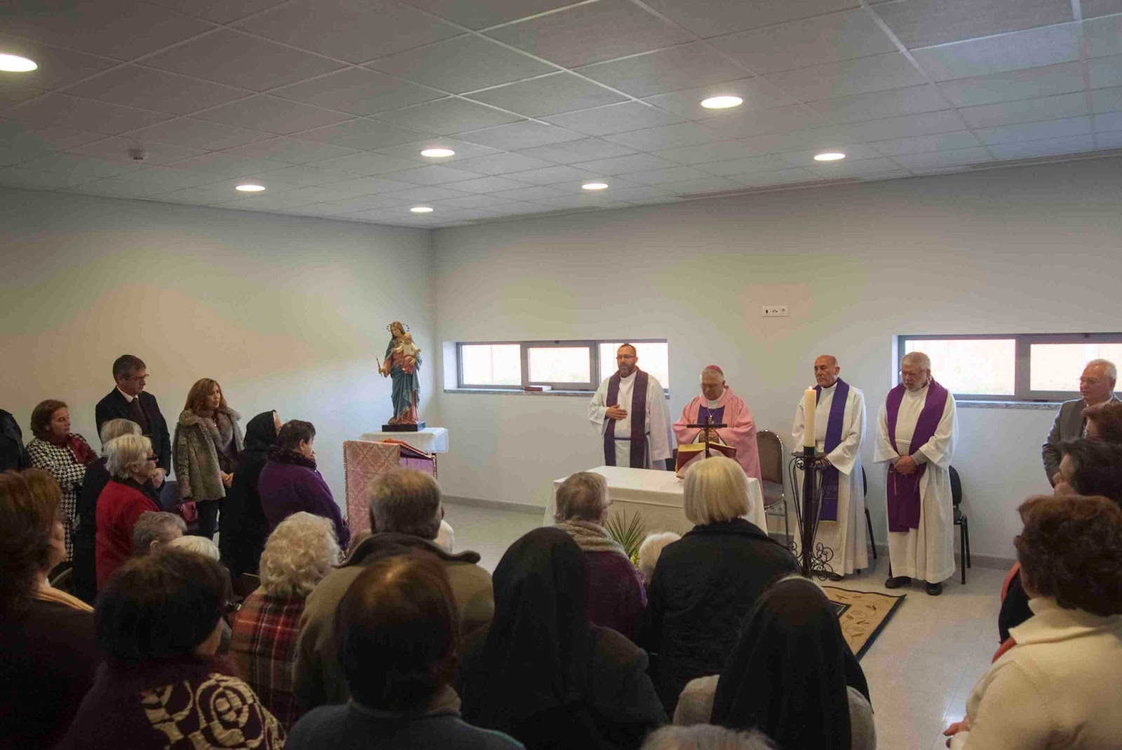 Missa na inauguração do Lar de Safara. No final, as entidades públicas presentes (Câmara, Junta, Segurança Social) foram simpaticamente convidadas pelo Sr. Bispo da Beja a usar da palavra. Não é tanto o facto de haver intervenções que me surpreende, mas o local em si...