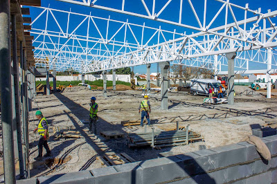 Dois meses depois do início da obra, é este o "estado da questão". O antigo Campo Maria Vitória ganha uma nova vida. Depois da fase treinadores-de-bancada passamos ao mundo real. A vida é assim, feita de avanços, de recuos, de vitórias, de derrotas, mas sempre sem paragens.