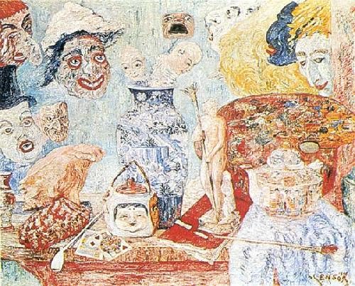 .Que imagens melhor exprimem a angústia? A resposta é banal, mas sincera. Mais do que quaisquer outros, os pintores expressionistas deram corpo a esse sentimento. Resisti a reproduzir O grito, mas este A onda (1921), de Edvard Munch (1863-1944), e a Natureza-morta com máscaras (1896) de James Ensor (1860-1949) levam-nos, em linha recta, a um universo torturado.