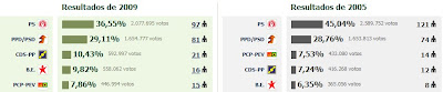 O PS tem um visível recuo. Comparando com 2005 é mesmo estrondoso.