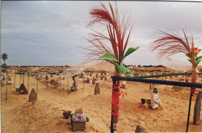 Vi esta fotografia, há uns meses, no CCB, e fiquei intrigadíssimo. A autora é a tunisina Lilia Benzid e o local é o cemitério de Zaafrane. O que mais me espantou foram as estruturas metálicas sobre os túmulos. Fiz várias indagações, junto de colegas tunisinos e franceses. Nada. Ninguém me soube explicar a sua função. Uma passagem do tratado de Ibn Abdun, de meados do século XII, e já aqui citada, dá uma pista, porventura falível: